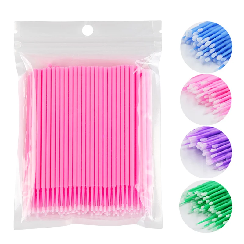Ватные палочки для ресниц 100 шт., одноразовые Микро Кисти для ресниц, палочки для чистки, ватные палочки для наращивания ресниц, микрокисти для туши