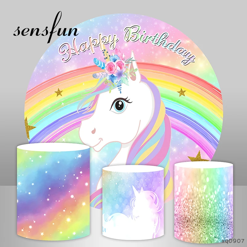 Sensfun Радуга Единорог вечерние круглый фоны для фотографии фон для фотосъемки на день рождения для девочек круг Фоны фотостудия плинтус чехлы