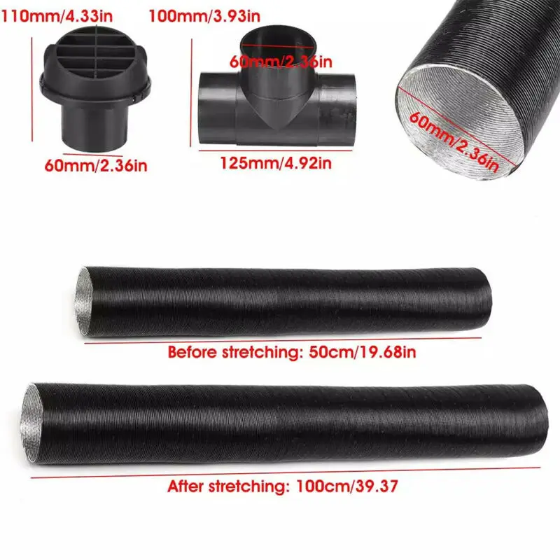 Подробности:* 100% новый и высокое качество* Состояние на 100% абсолютно новый* Название продукта: нагревательный канал, вентиляционное отверстие, зажим для шланга и Т-образная труба* Фитинг: для eberspacer, Webasto,Propex обогреватель теплый воздуховодСпецификация:1. Теплый воздуховодМатериал: алюминиевая фольгаЦвет: черныйДлина: 50-100 см/19,68-39,37 дюймаДиаметр: 60 мм/2,36 дюймаПрименение: Для Webasto, Dometic, Propex и т. Д.Особенности:В основном используется для дизельных воздушных нагревателей 2 кВт.Горячий и холодный, воздуховод для дизельного нагревателя Webasto, Отечественный, Propex и т. Д.2. Вентиляционное отверстие нагревателяМатериал: пластикЦвет: черныйВысота: 100 мм/3,93 дюймаДиаметр: 60 мм/2,36 дюймаОсобенности:Подходит для 60 мм теплого воздуховода.Передняя фасция является съемной, чтобы включить доступ к винтовым отверстиям для правильной установки.Фасция вращается на 360 градусов-теплый воздух может быть направлен.3. Воздуховод T трубыМатериал: пластикЦвет: черныйДиаметр: 60 мм/2,36 дюймаДля воздуховода внутреннего диаметра 60 ммЭффективное разделение потока теплого воздуха от вашего нагревателя.4. Зажим для шлангаМатериал: металлЦвет: хромДиаметр: 60 мм/2,36 дюймаПосылка: