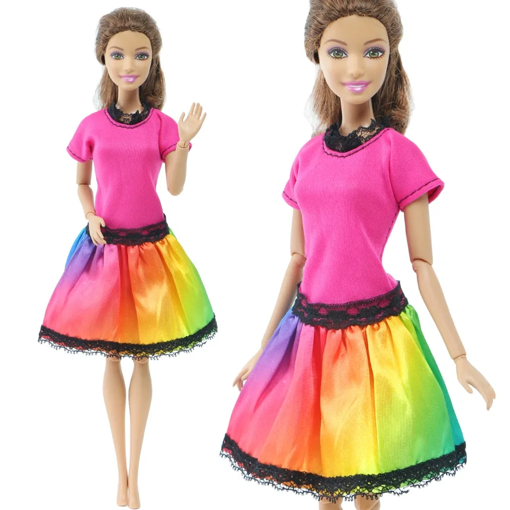Модная одежда ручной работы, Повседневная футболка, шорты, платье, одежда для куклы Барби, благородный празднивечерние аксессуар сделай сам для маленьких девочек, 10 шт.