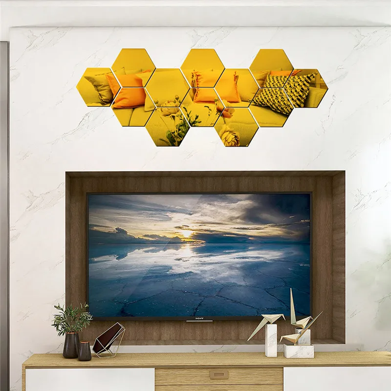 12 шт.компл. DIY 3D зеркальная Настенная Наклейка Шестигранная домашний декор зеркальные декоративные наклейки Искусство настенные украшения наклейки разные цвета Прямая поставка