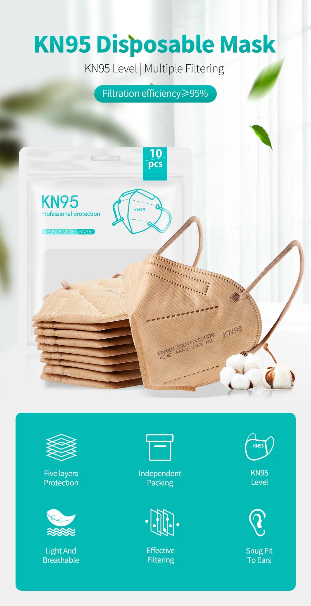 1-100PCS KN95 Masks ffp2mask 5 Layers Mouth Mask FFP2 KN95 Respirat...