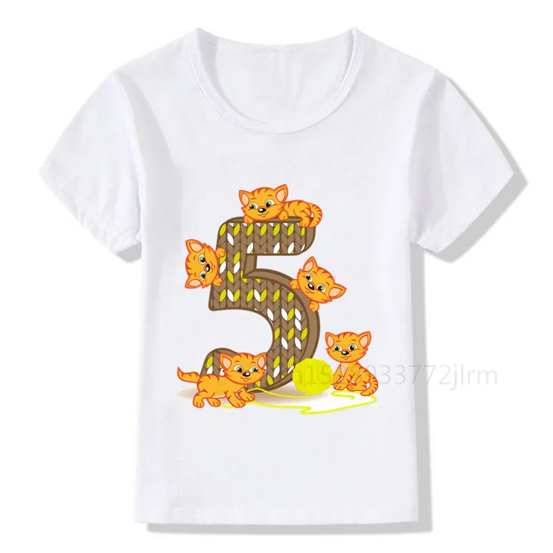 Футболка для мальчиков и девочек, с принтом в виде кота, 1-9 дней рождения