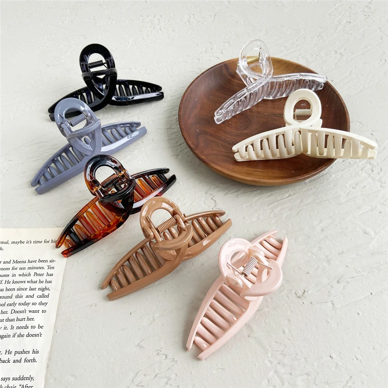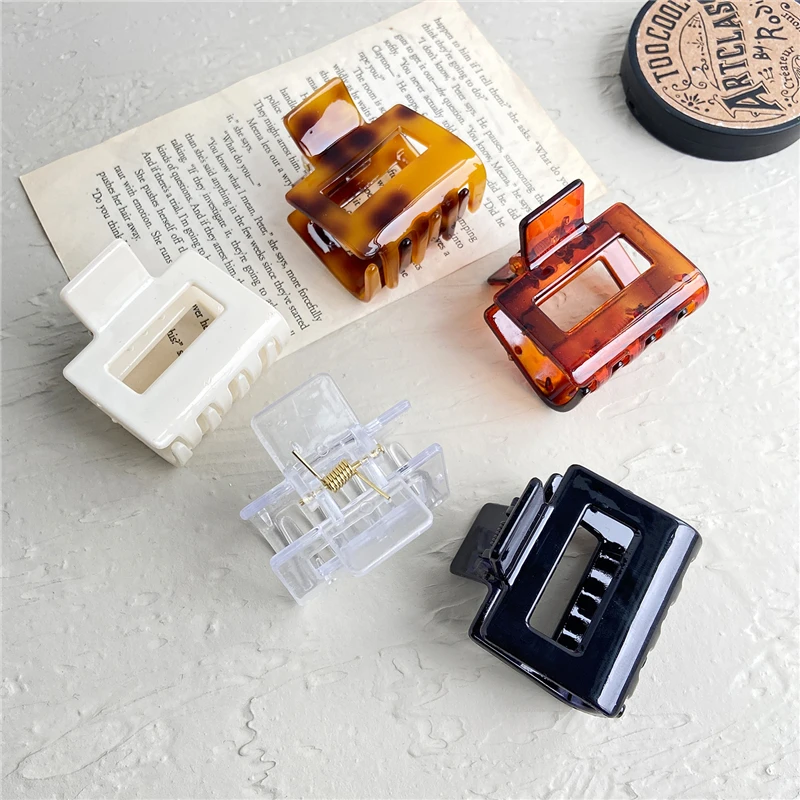 Корейские однотонные крупные заколки для волос, элегантные акриловы...
