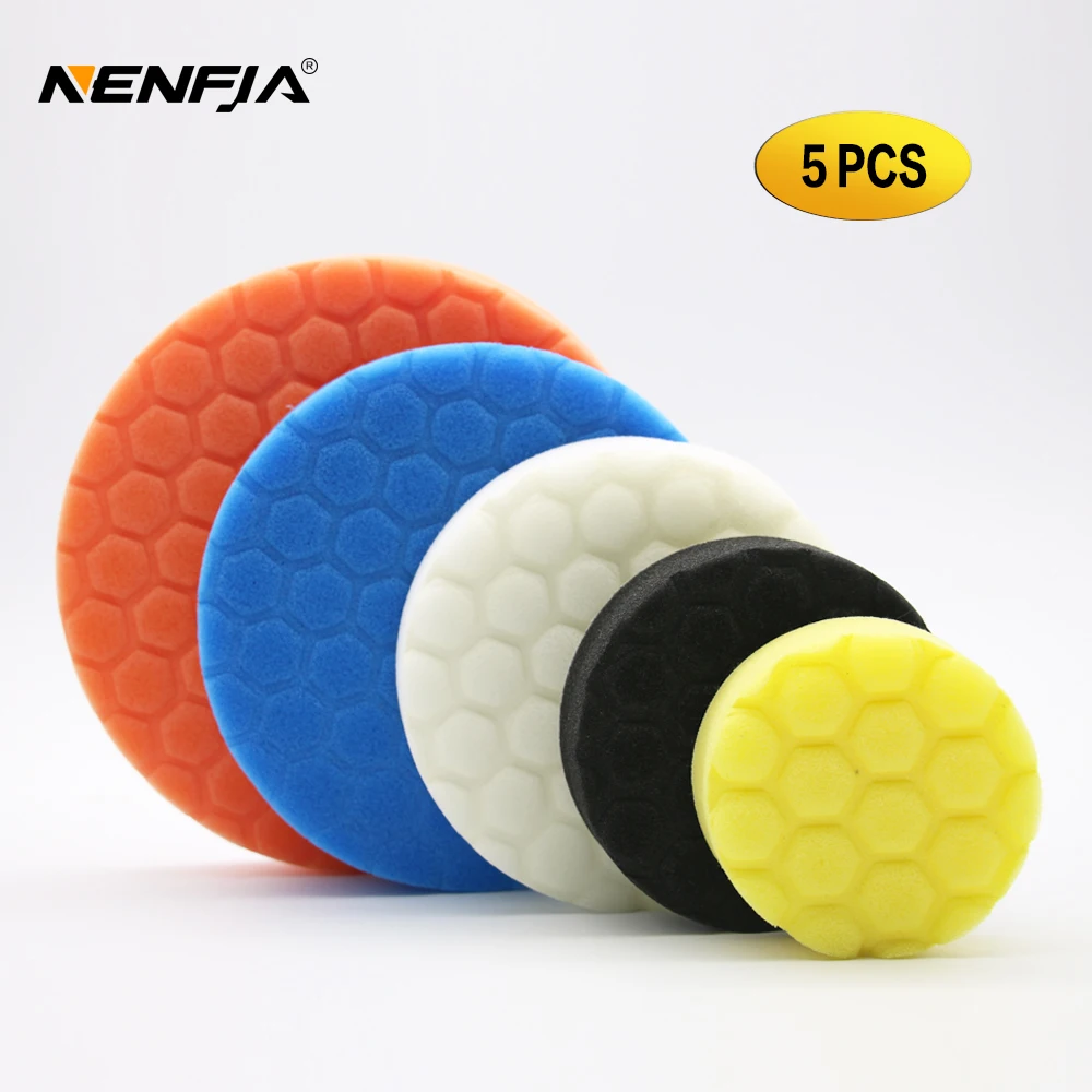 5 шт., Набор шестигранных губчатых полировальных подушек 3 "/4"/5 "/6"/дюймов для полировки автомобиля, полировщика дома, «сделай сам», Полировочная поролоновая подушка, Полировочный губчатый диск