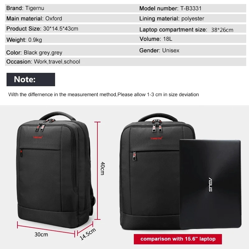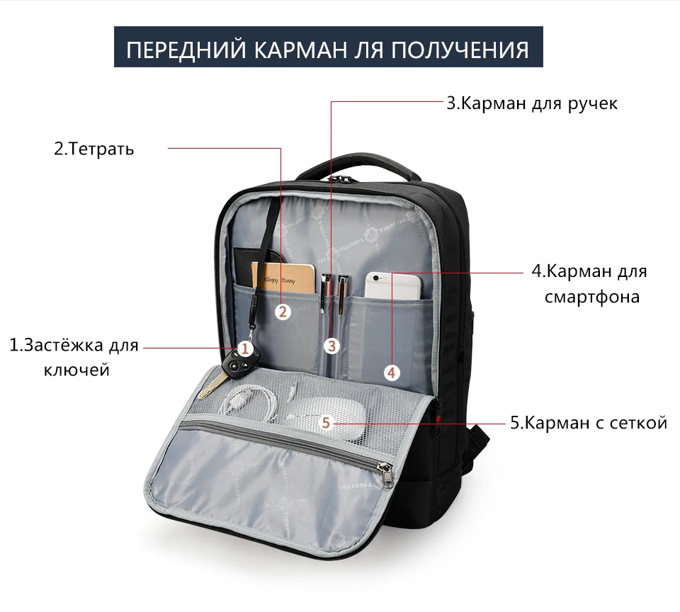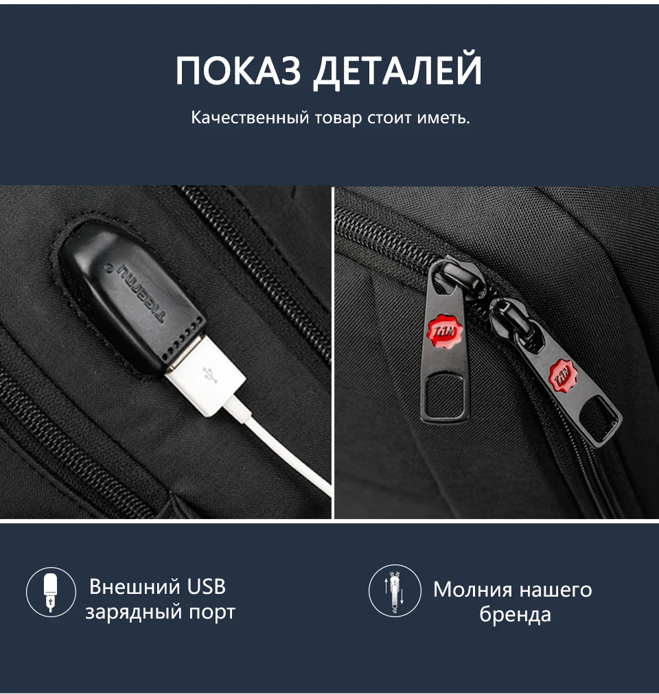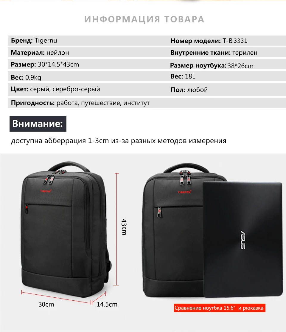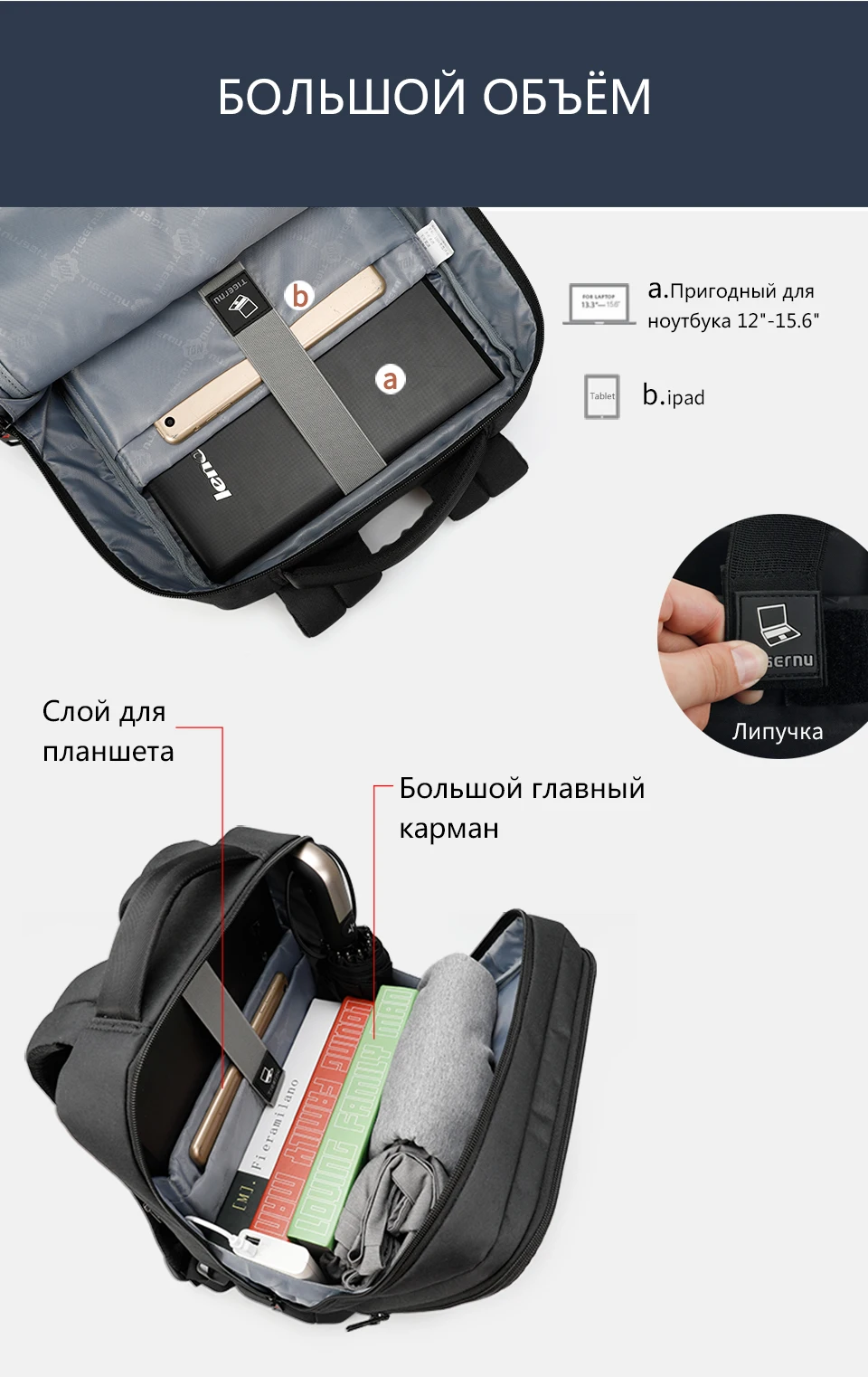 Рюкзак Tigernu мужской водонепроницаемый для ноутбука 15,6 дюйма, деловой ранец с USB-зарядкой и защитой от кражи, подходит для колледжа, путешествий, школы