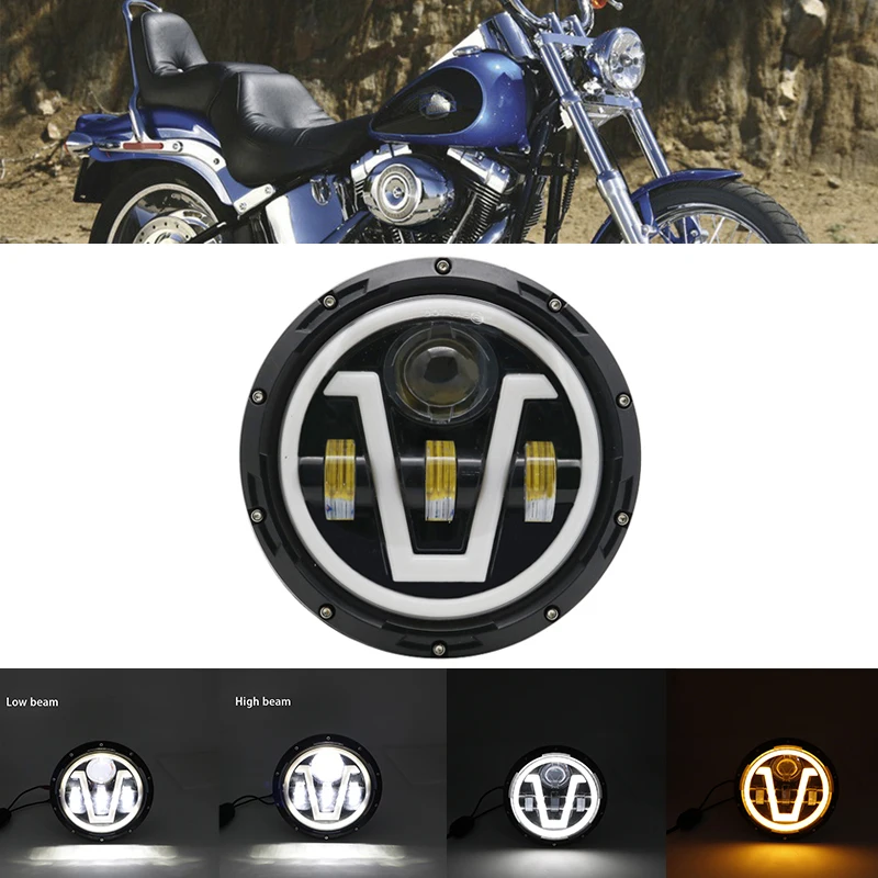 7-дюймовый светодиодный налобный светильник онарь Halo DRL для мотоциклов, удилище FatBoy, наследие, Softail Slim, Deluxe, Switchback, Road King, мотоцикл