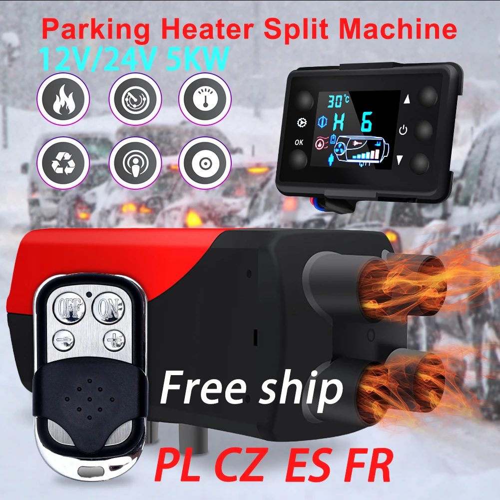(CZ Бесплатная доставка) автомобильный обогреватель с четырьмя отверстиями 5 кВт 12 В24 В Воздушный дизельный Обогреватель с пультом дистанционного управления ЖК-монитором для автомобиля RV мотоцикла дома прицепа