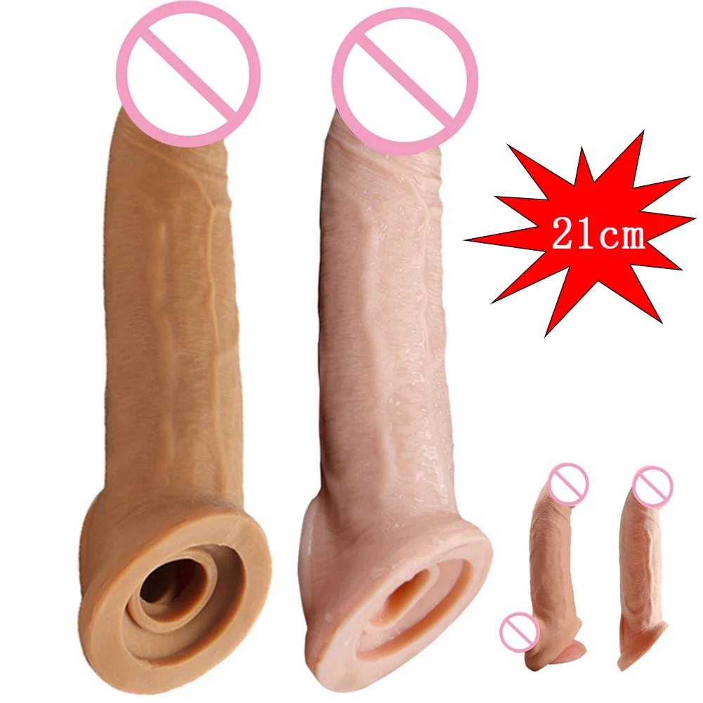 Утолщенный презерватив 21 см, большой удлинитель пениса, эластичное кольцо на пенис для задержки эякуляции, игрушки для мужчин интимные товары сексуальные