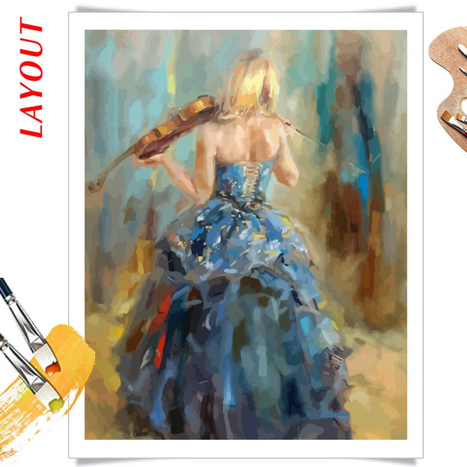 Картина AZQSD по номерам девочка скрипка ручная краска набор холст Современная Гостиная Украшение Фигурка Акриловая картина маслом по номерам