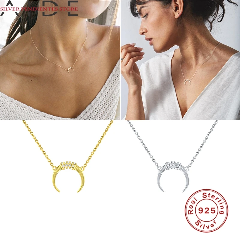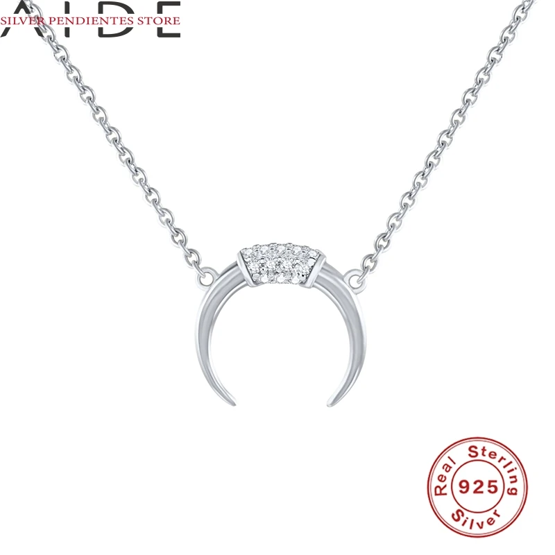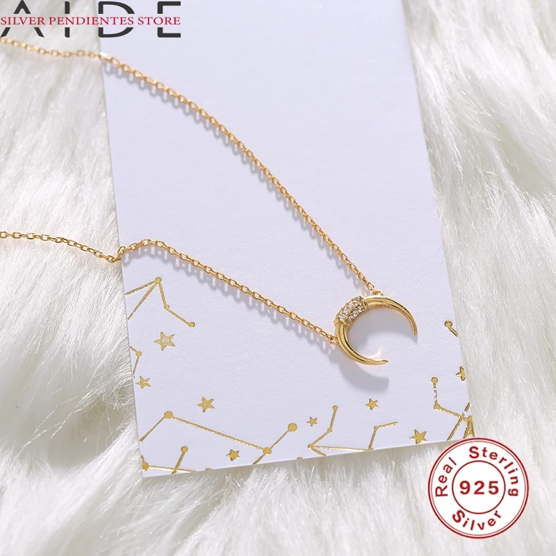 Женское Ожерелье из стерлингового серебра 925 пробы с подвеской в виде Луны, подвеска в виде полумесяца с европейскими и американскими бриллиантами