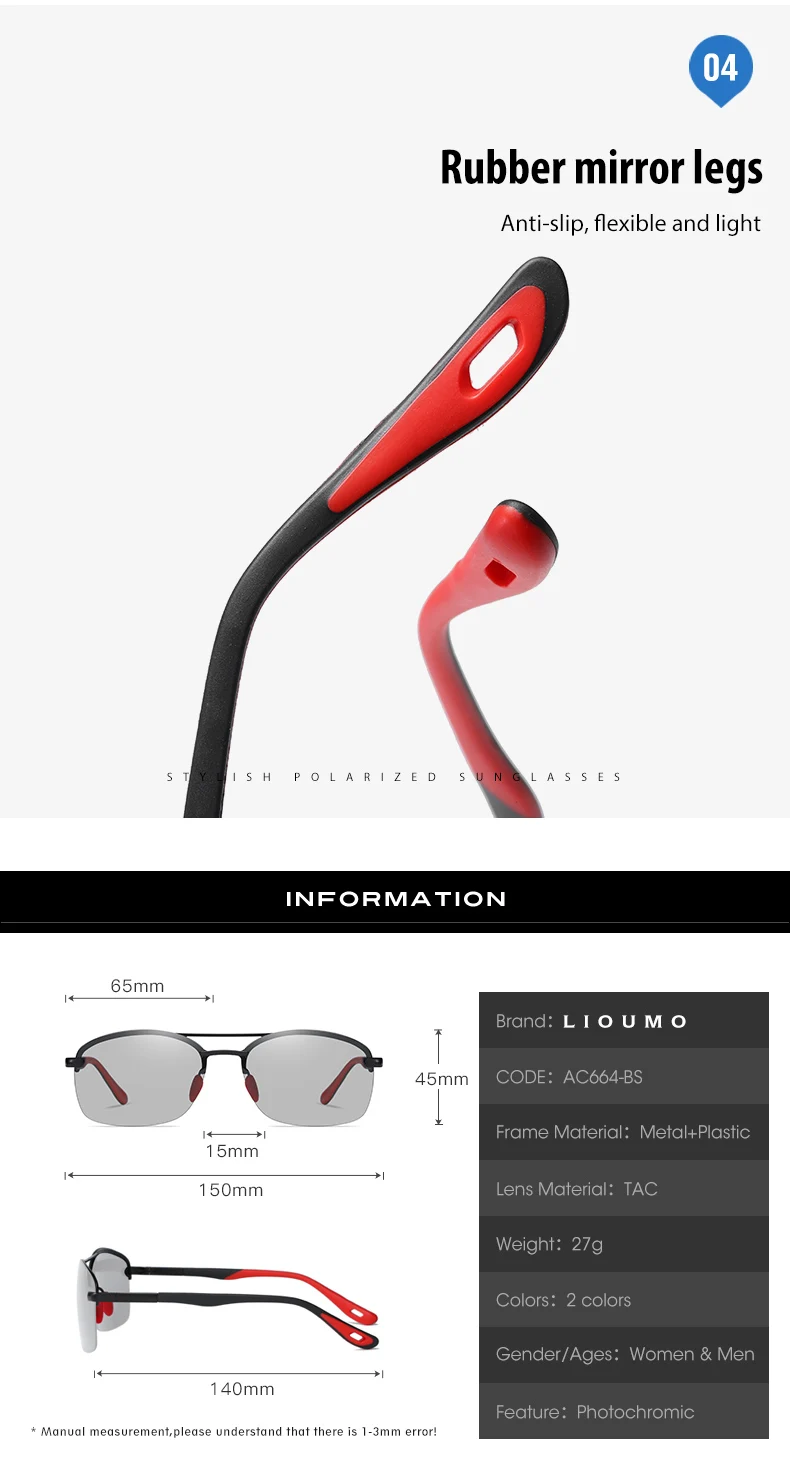Солнцезащитные очки унисекс LIOUMO, поляризационные, фотохромные, м...