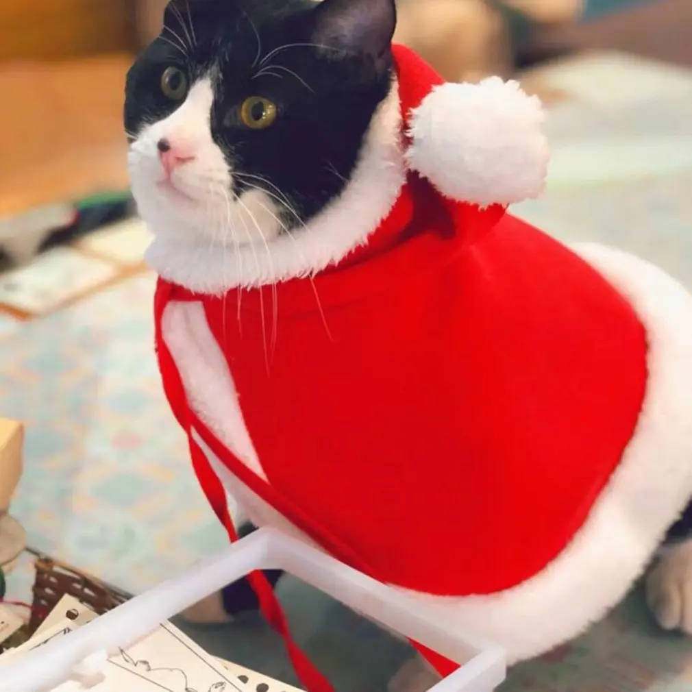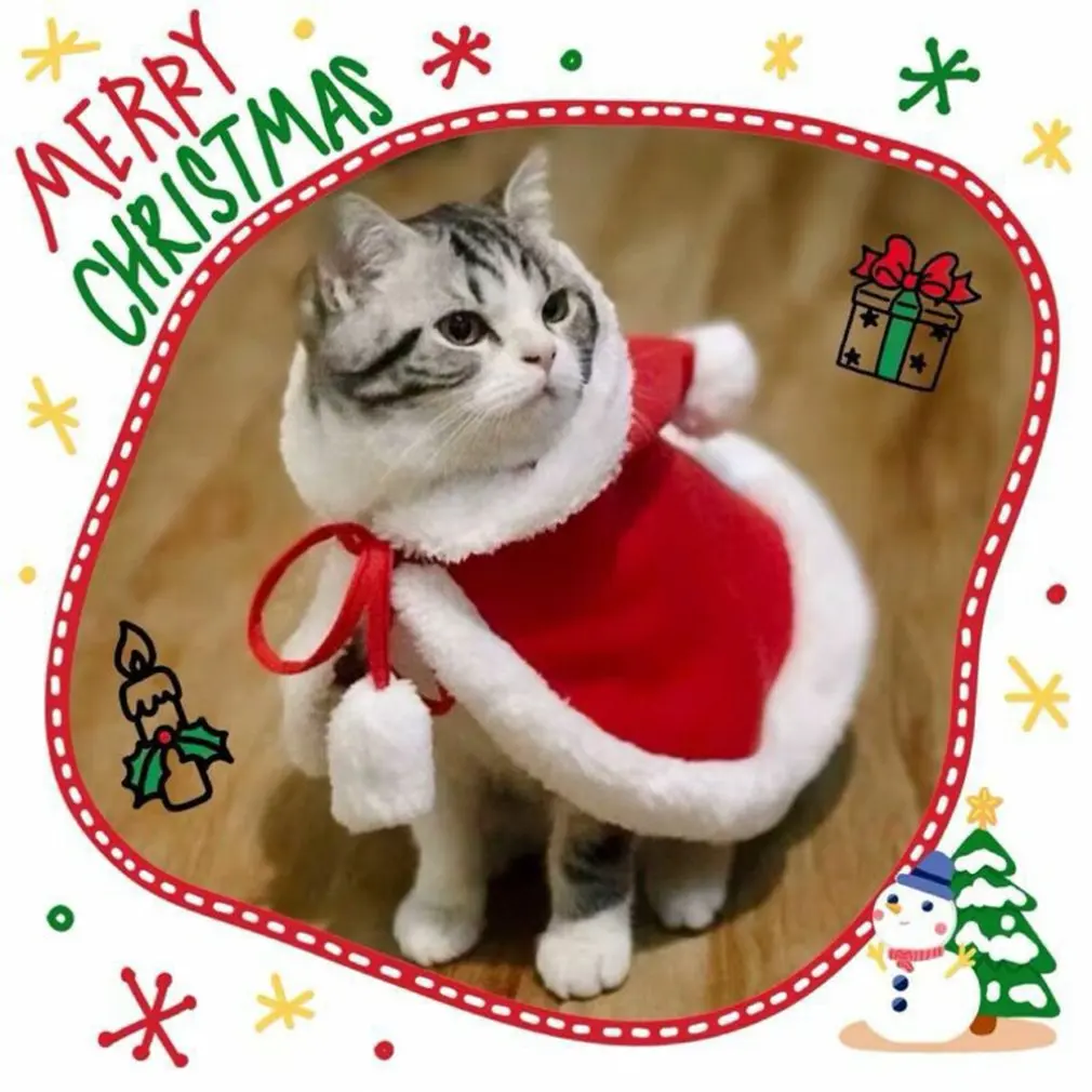 Восхитительный и праздничный плащ Санта-Клауса с шляпой, сделает вашего питомца более привлекательным и очаровательным.