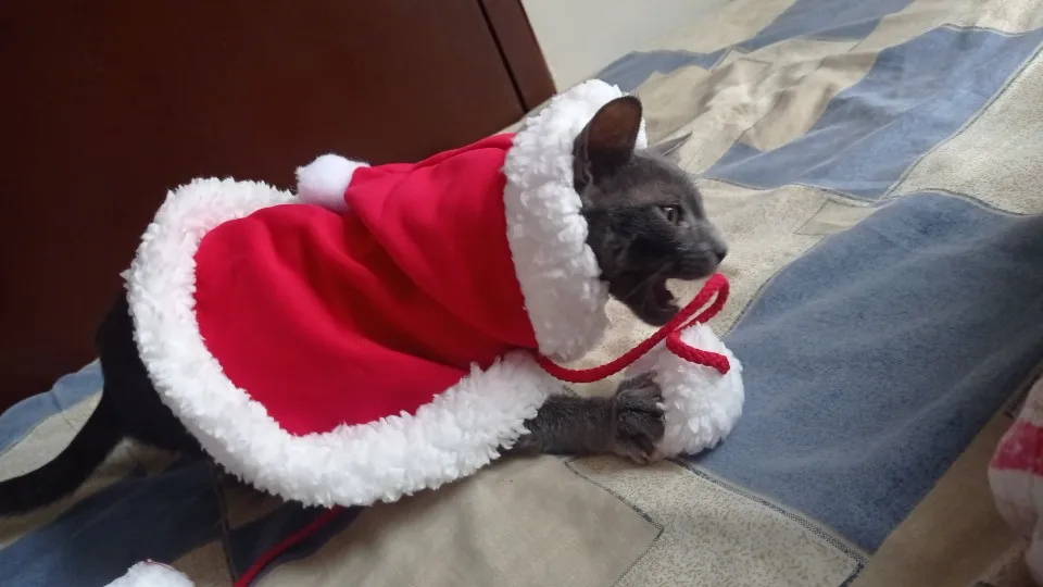 Размер М немного велик для 5-месячного котенка. Идеально подходит для 1 года на Рождество. Идеальное состояние и очень хорошая ткань. Arrived in 2 weeks to peru.
