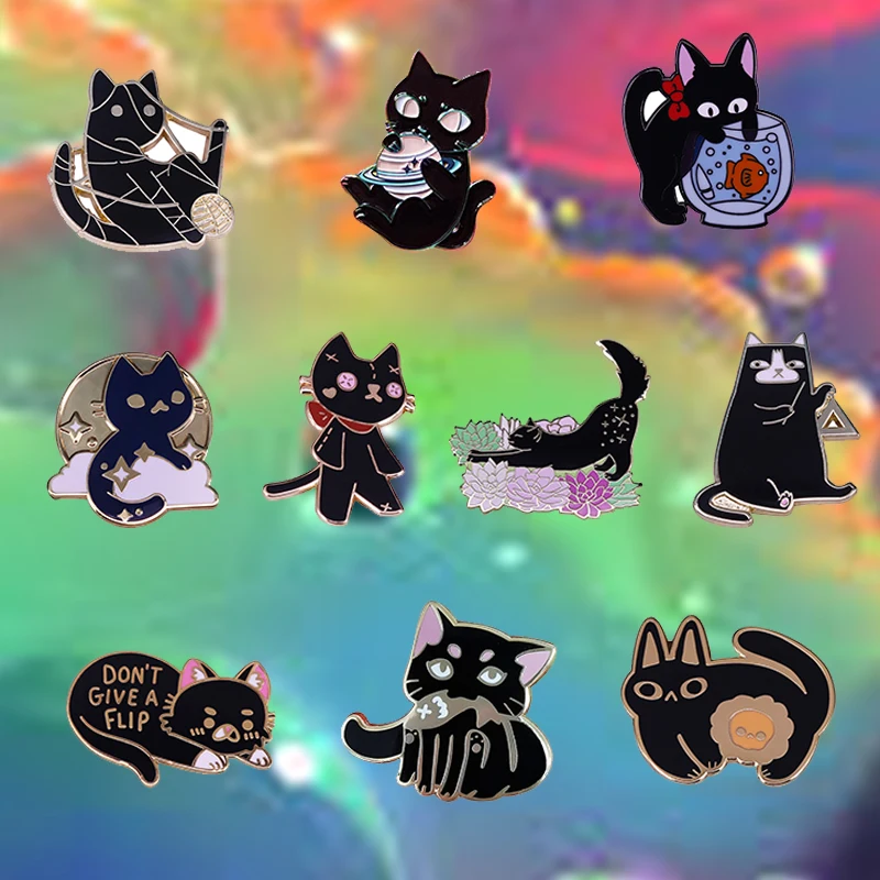 Черный броши-кошки Милый Забавный котенок значок простой Забавный эмалированный булавка черный котенок подарок для влюбленных