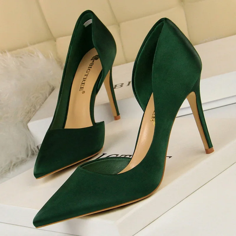 Туфли-лодочки женские шелковые черные, синие, серебристые, на шпильке 9,5 см