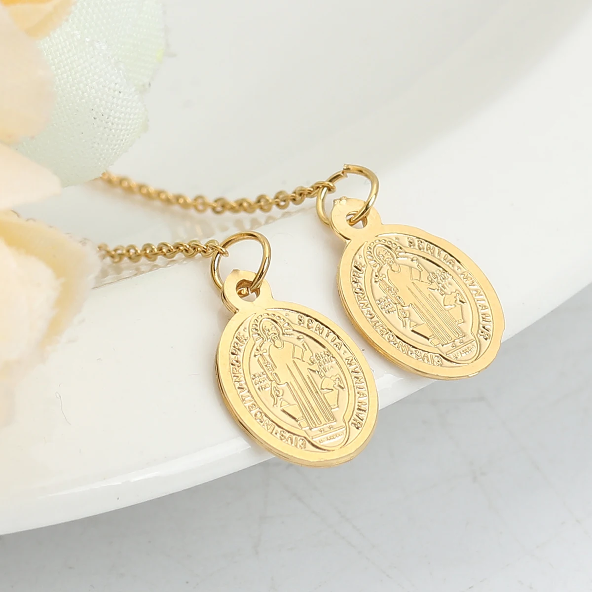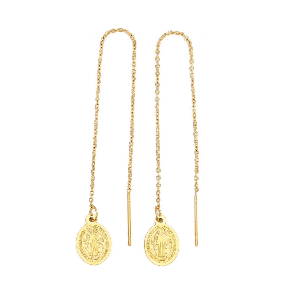 2 шт. 304 Нержавеющаясталь золото Цвет Овальный Иисуса ухо устройство вдевания нитки Earrings13cm длинные подарок для Для женщин и девушек любовной