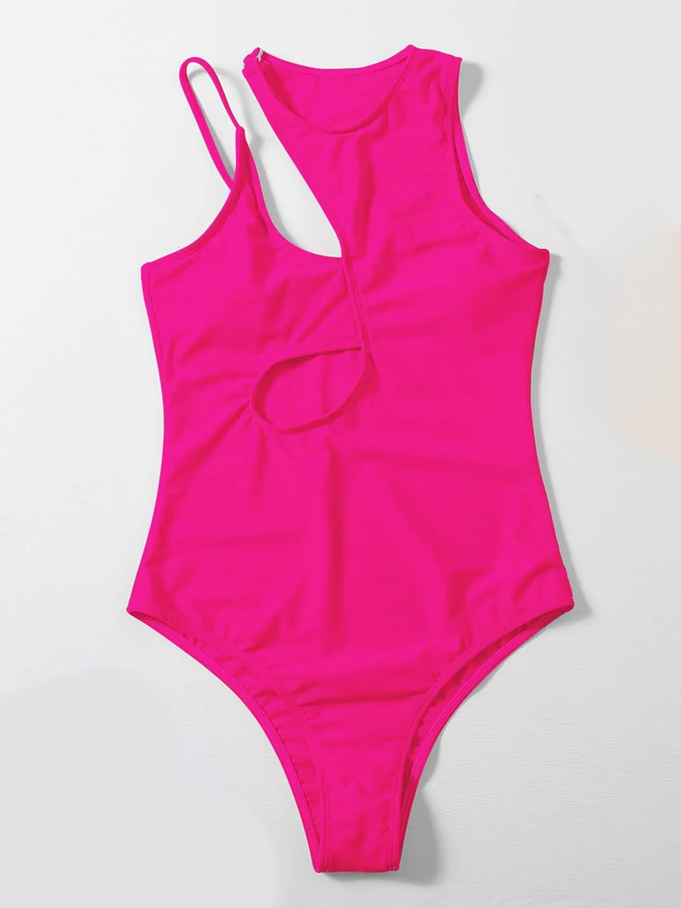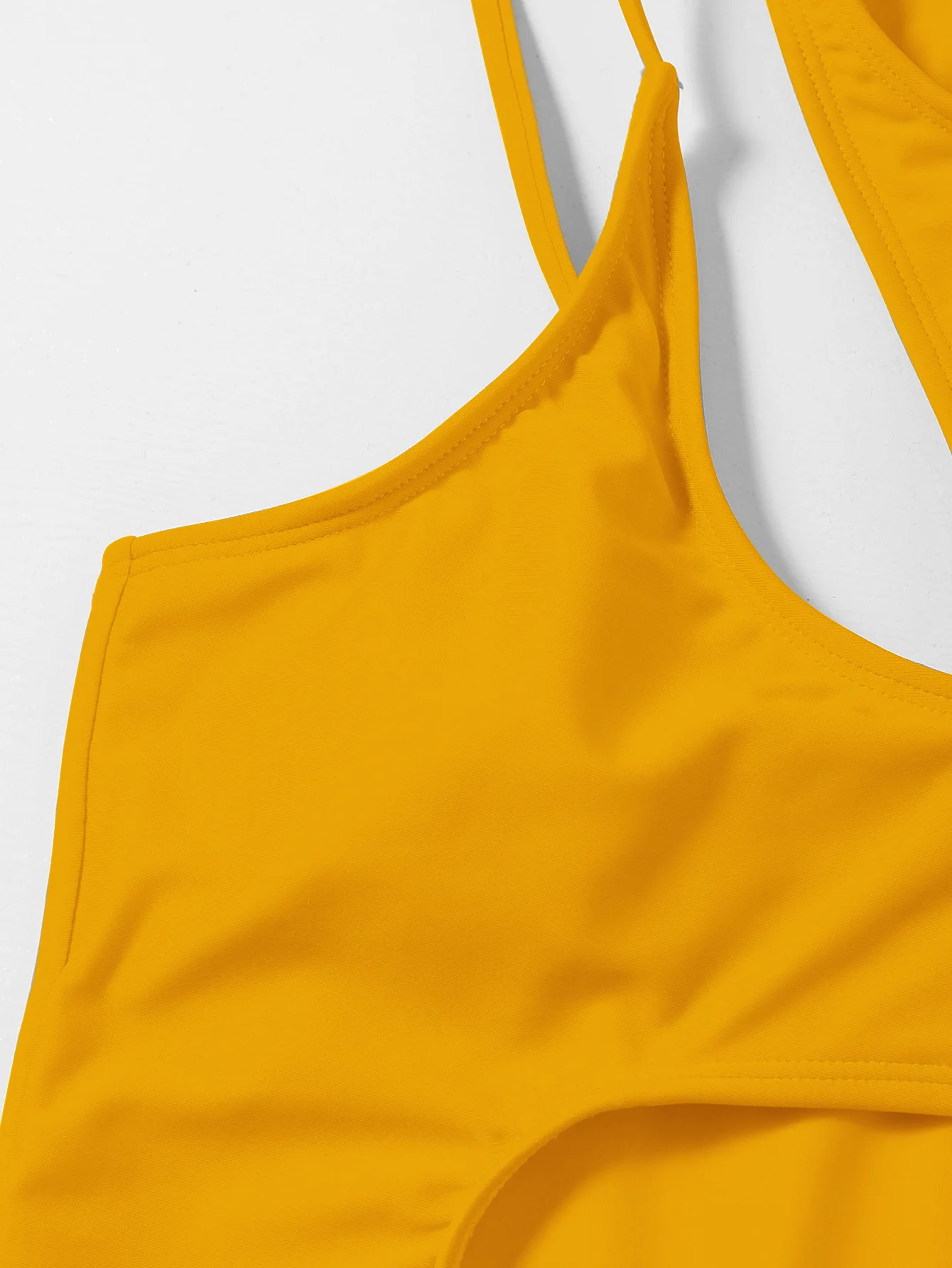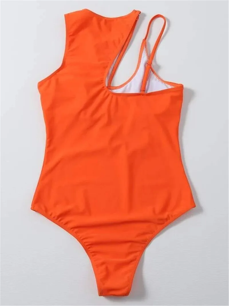 Сексуальный купальник, Женский неоновый однотонный оранжевый бикини с высокой горловиной, женский купальный костюм с вырезами, Цельный купальник, купальный костюм, монокини