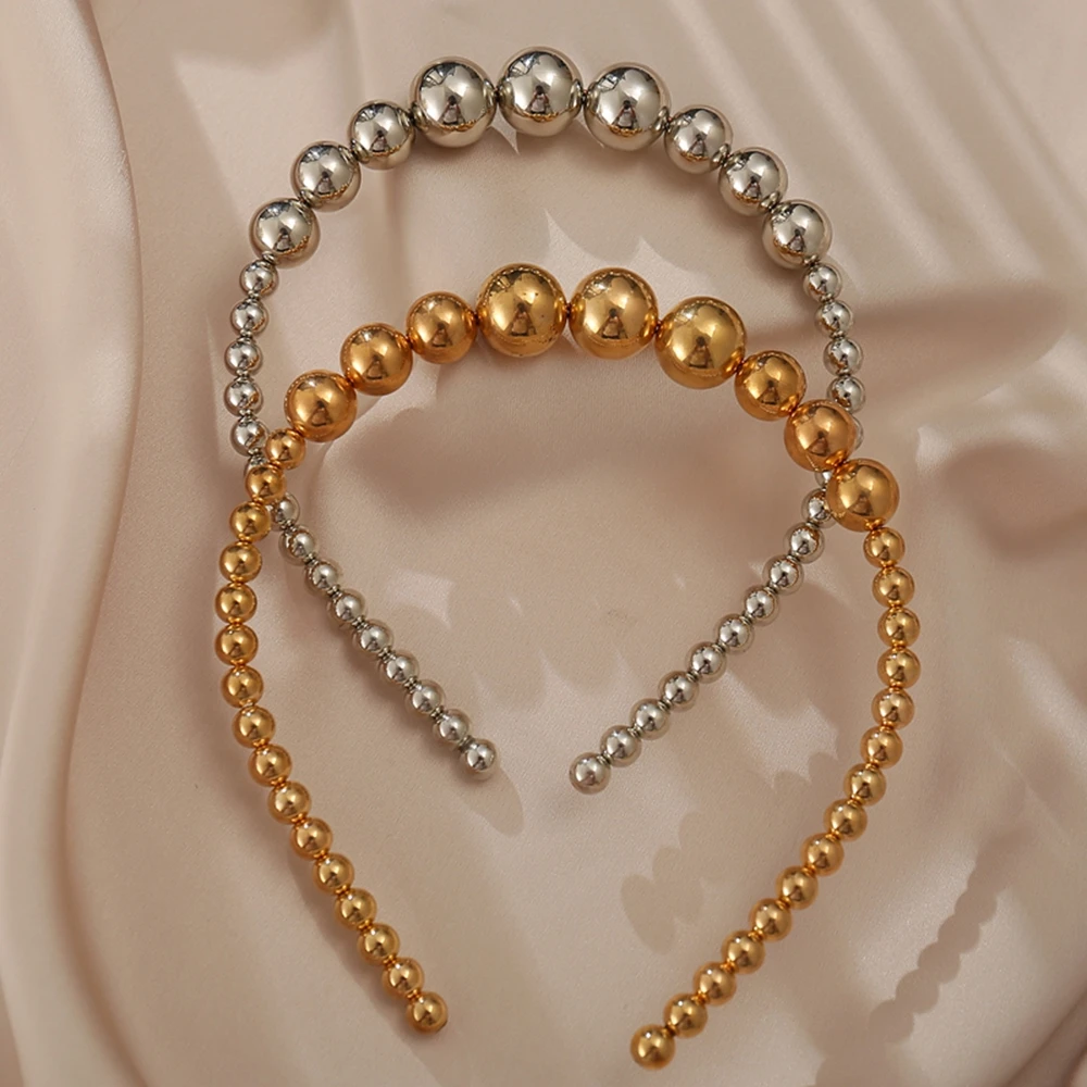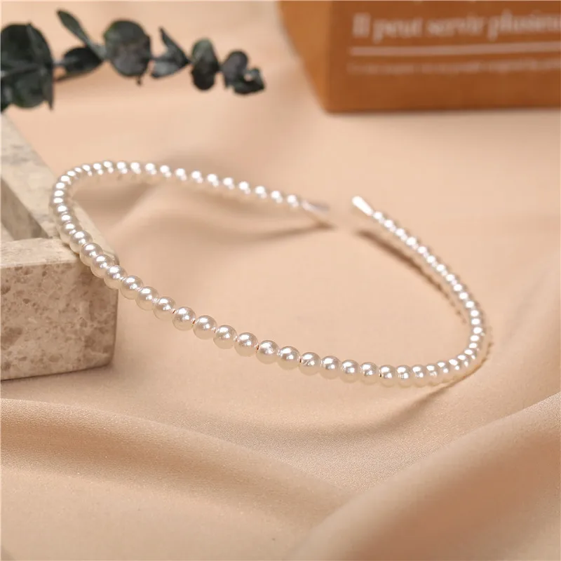 Повязка для волос с большим жемчугом Женская, золотистый аксессуар для волос, корейский дизайнерский обруч ручной работы с бантом и цветами, свадебная металлическая лента на голову