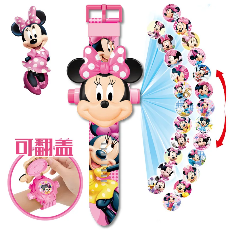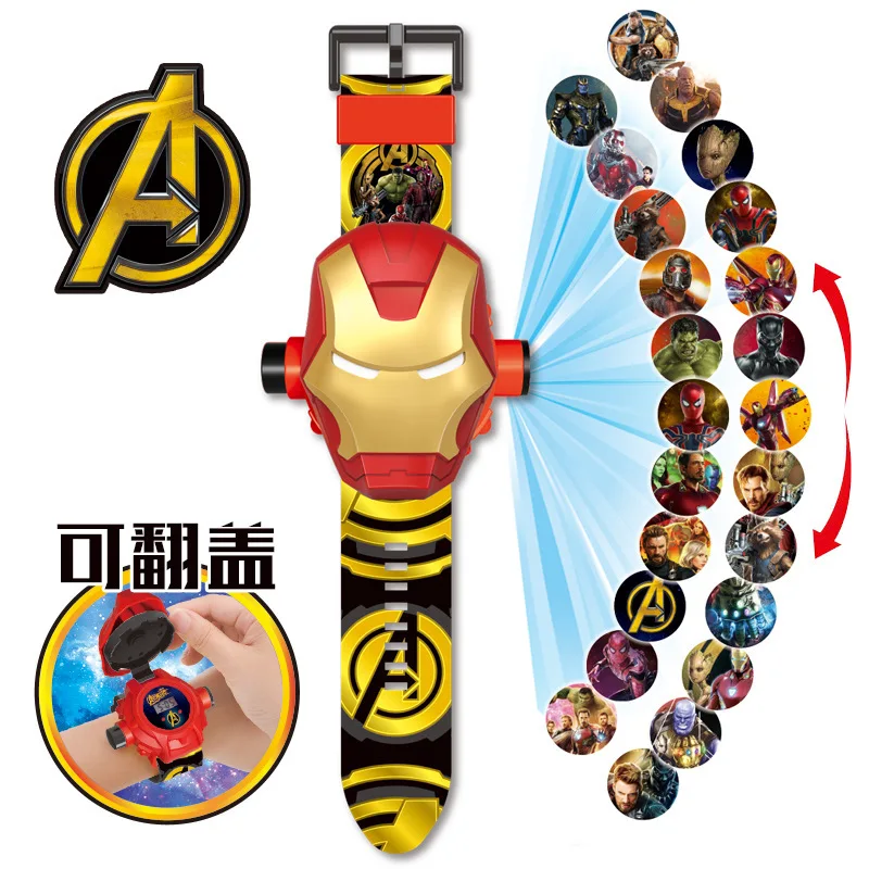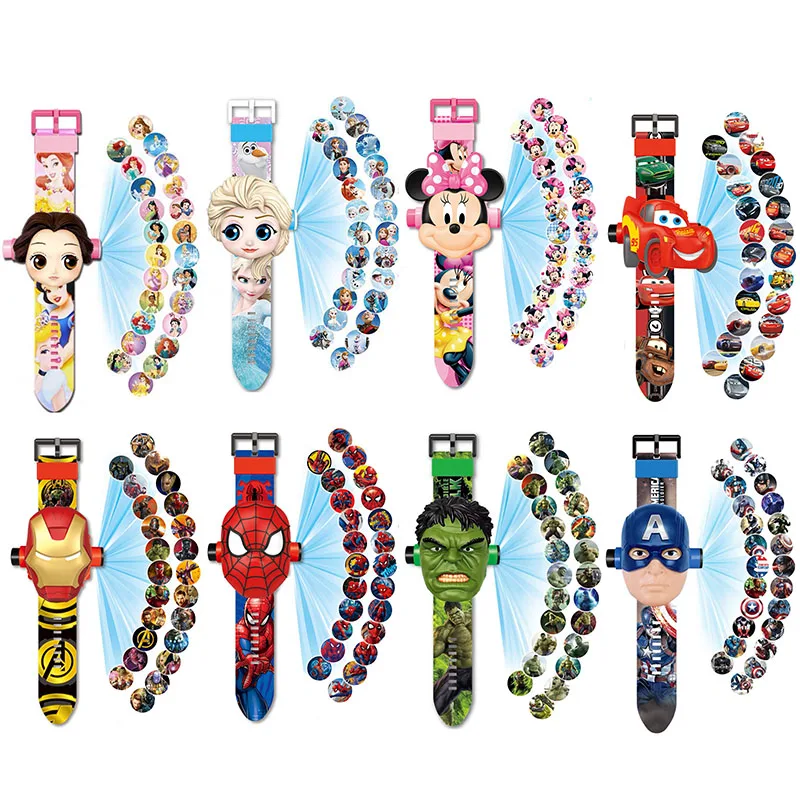Часы диснеевские Проекционные детские электронные, фигурка аниме Холодное сердце, принцесса, Marvel, Человек-паук, Железный человек, Микки Маус