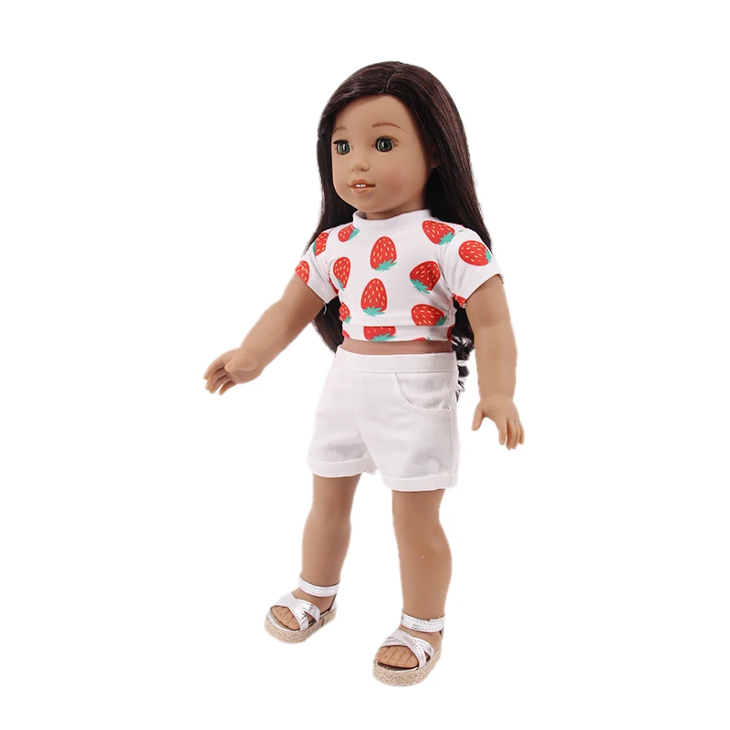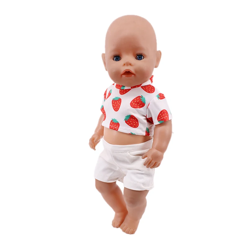 Кукольная юбка + футболка + одежда с клубникой подходит 18 дюймов американская кукла; Большие размеры 40-43 см для ухода за ребенком для мам, родившиеся аксессуары для малышей на день рождения, фестиваль, подарок