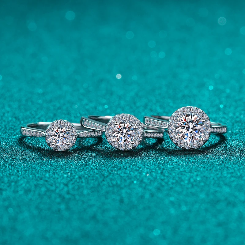 ANZIW 925 пробы серебро синтетический бриллиант 0.3CT0.5CT1.0CT2.0CT классический Halo Обручение кольцо для Ювелирные изделия Подарки