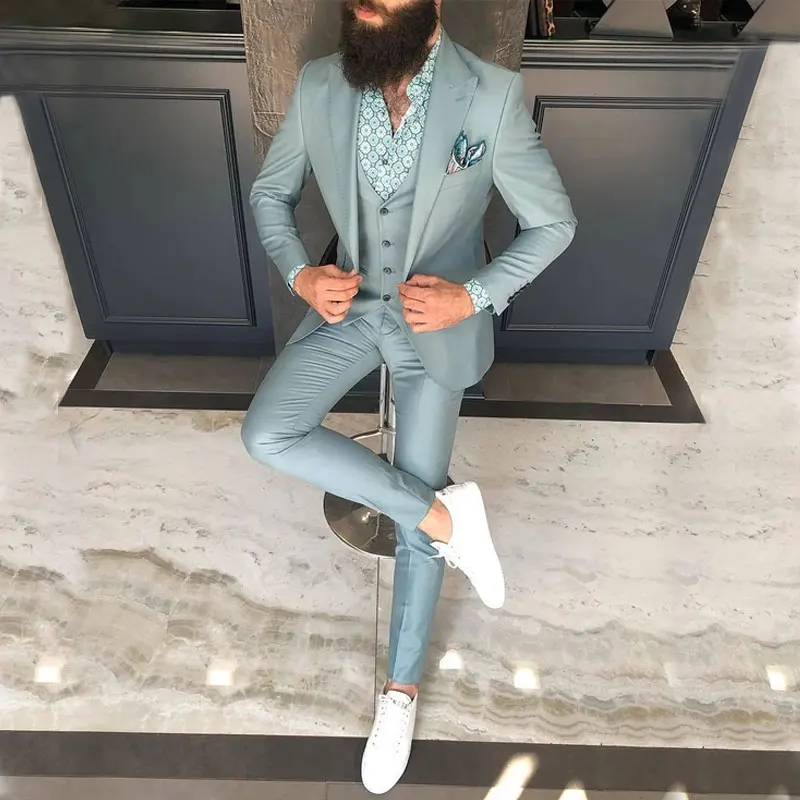 Красивый 3 предмета для мужчин формальный костюм, смокинг с отворотами для мужчин костюмы с брюками Slim Fit спортивные пиджаки для выпускного (пиджак + брюки + жилет)