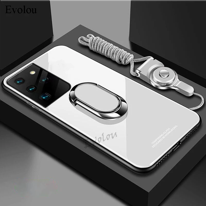 Чехол для Samsung S22, Ультратонкий чехол с магнитным кольцом-держателем, подставка, чехол для телефона Samsung S21 Plus 5G S20 FE Note 20, задняя крышка из закаленного стекла