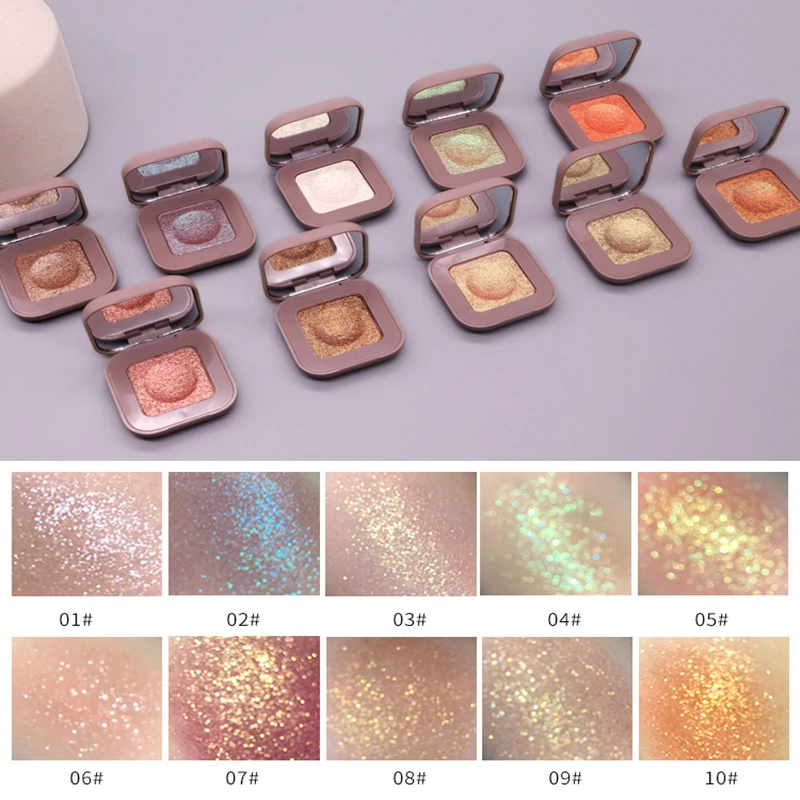 Монохромные тени для век с пюре картофеля, 10 цветов, мерцающие, жемчужные светильник стойкие, светящиеся, шелковистые, блестящие, пудра, инструмент для макияжа TSLM1