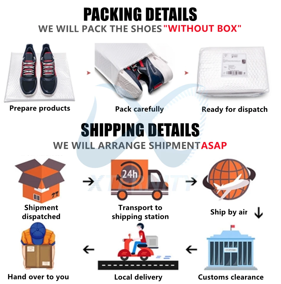 1. Разные страны или производители имеют различные стандарты размеров, пожалуйста, выберите размер только в соответствии с длиной Вашей стопы.2. Чтобы быстрее пройти таможню, мы упакуем обувь «без коробки». Если вам нужна коробка, пожалуйста, обратите внимание отдельно или свяжитесь с нами.3. Пожалуйста, проверьте правильность информации о вашем заказе, включая имя получателя, адрес доставки, номер телефона и почтовый индекс.4. Если какие-либо проблемы во время процесса покупок, время доставки или после получения товара, пожалуйста, не стесняйтесь связаться с нами.