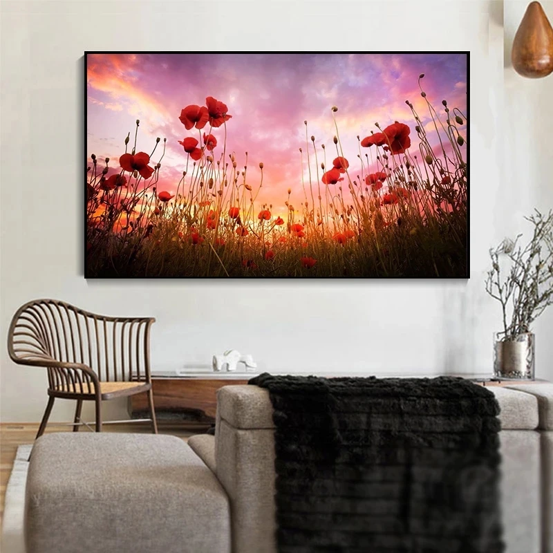 Современная Красная Картина на холсте с цветами мака постеры в скандинавском стиле печать на стене картина для гостиной украшение дома