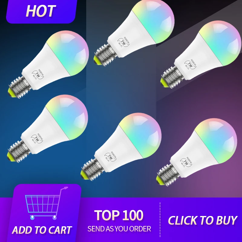 Умная Светодиодная лампа E27, цветная лампа с изменением яркости, 7 Вт, RGBW, белые украшения для дома, аксессуары для умного дома, Alexa Google Home