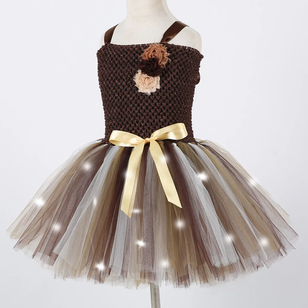 Платье для девочек со светодиодной подсветкой, вечерние чное платье-пачка принцессы с единорогом, одежда для косплевечерние на день рождения