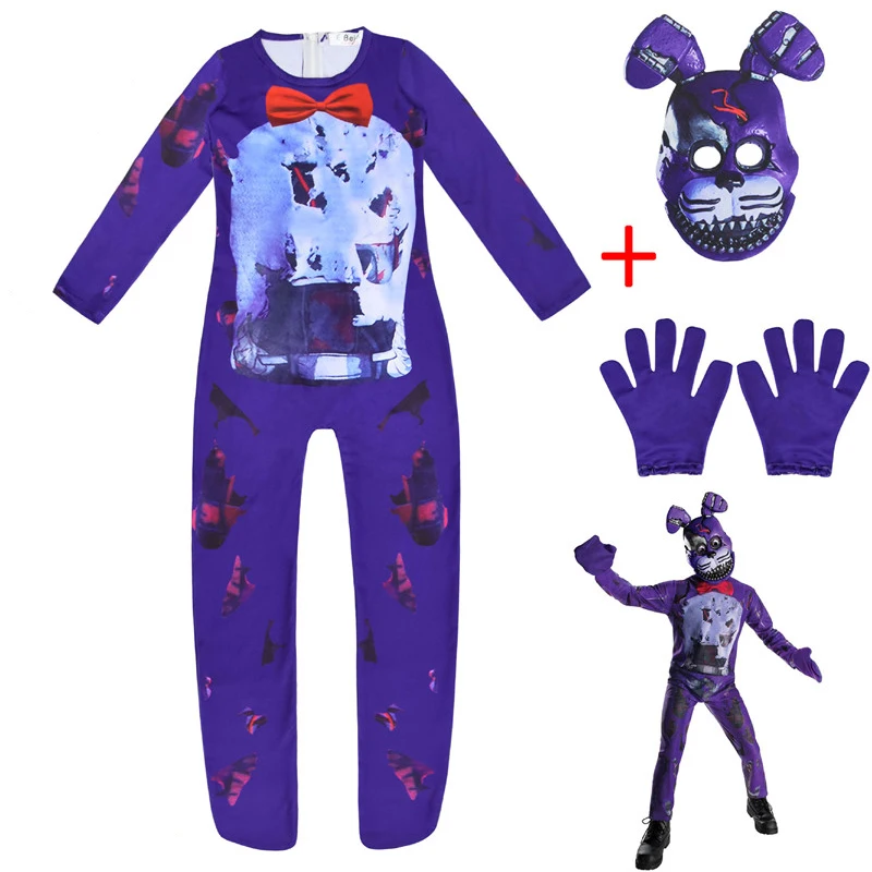 Костюм для косплея Phantom Freddie для детей, аниме-комбинезон, боди для мальчиков и девочек с маской и перчатками, забавная одежда для вечеринки