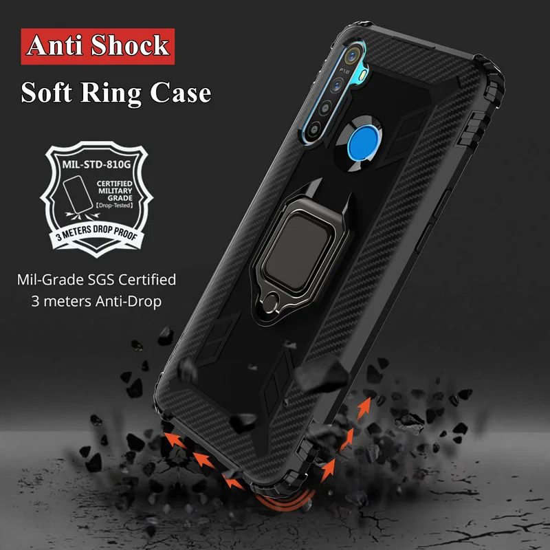 Противоударный армированный чехол для OPPO Realme 6 5 6i 6s XT C3 5s X2 X50 Pro A91 A72 A52 A92, магнитный силиконовый чехол с кольцом