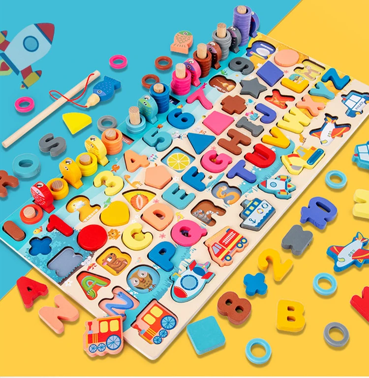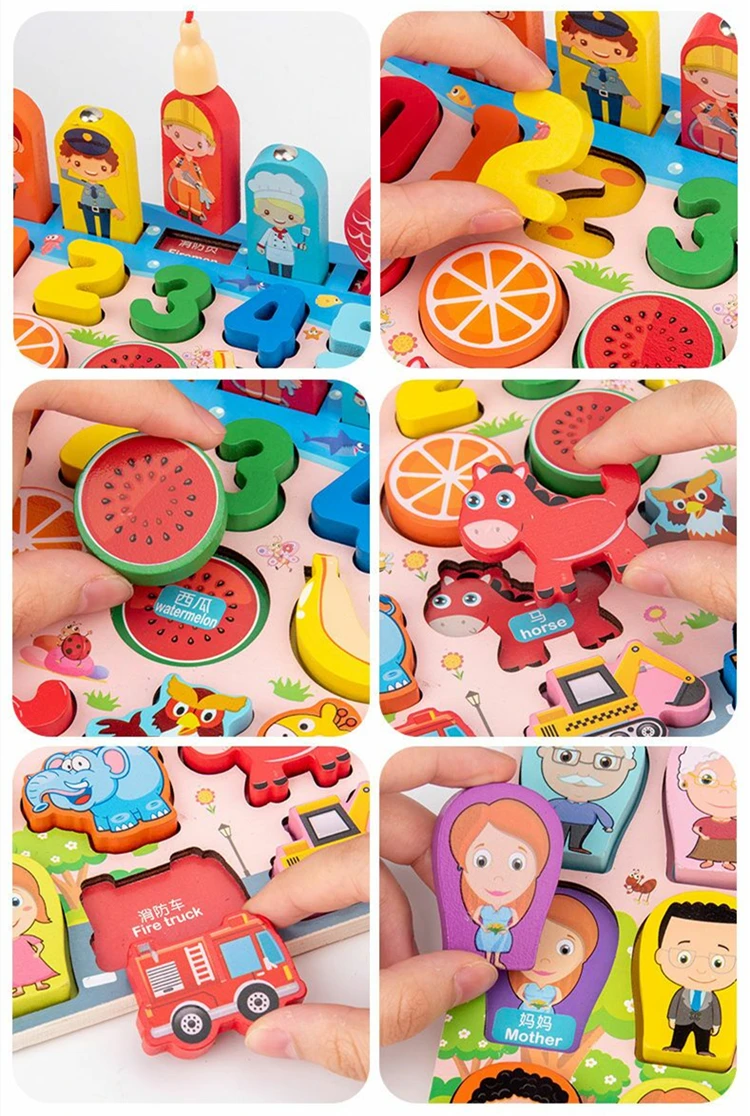 Обучающие деревянные игрушки Монтессори для детей, доска для игрушек по методу Монтессори, математические игрушки для рыбалки, Обучающие игрушки Монтессори для 1, 2, 3 лет