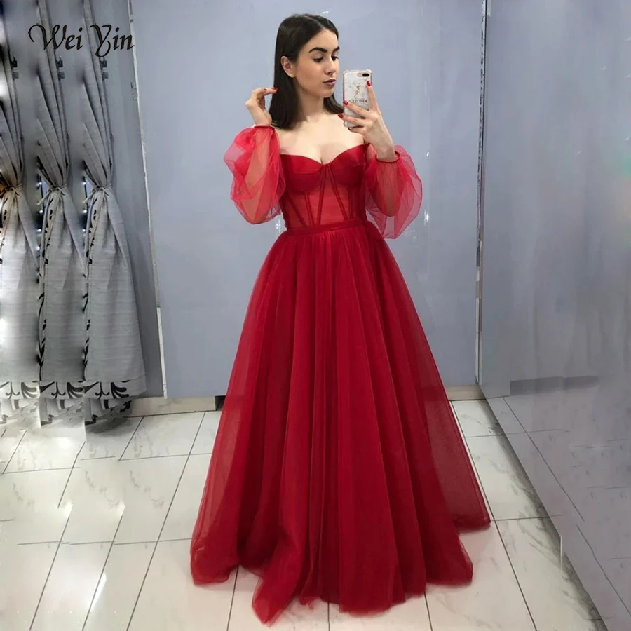 Индивидуальные цветные платья Weiyin для выпускного вечера, платья принцессы с открытыми плечами и длинными рукавами, платья трапециевидного силуэта из смятого тюля, вечерние платья