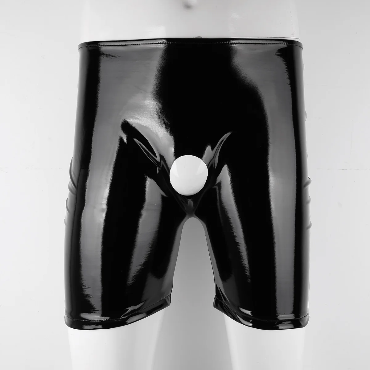 Для мужчин открытые с отверстием для пениса шорты-боксеры для геев, сексуальное белье, сексуальное белье, эротическое нижнее белье для ночного клуба блестящие латекс из искусственной кожи под Штаны Короткие шорты Штаны