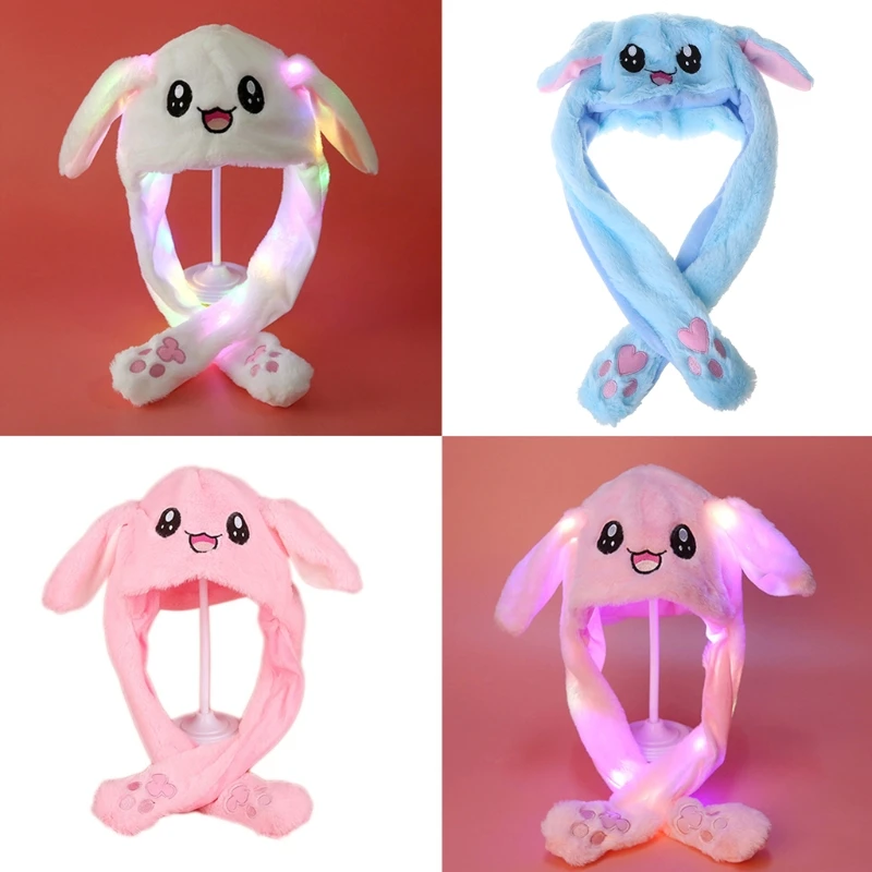 Для взрослых и детей светильник на плюшевая шапочка в виде животного с движущимися ушками рисунком из мультфильмов Заяца для панда светодиодный светящийся шапки-ушанки Кепки мягкие игрушки