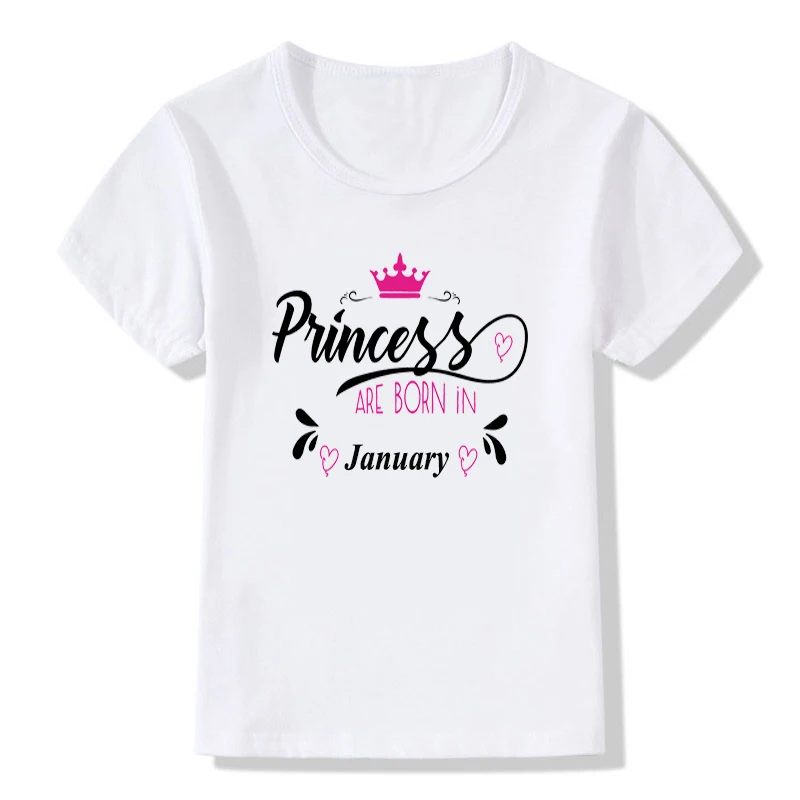 Платье для маленьких девочек на день рождения платье принцессы рождаются в JAN-DEC футболка с рисунком детская одежда, красивая одежда, симпатичная одежда, Детская футболка с коротким рукавом для мамы, DEC1606