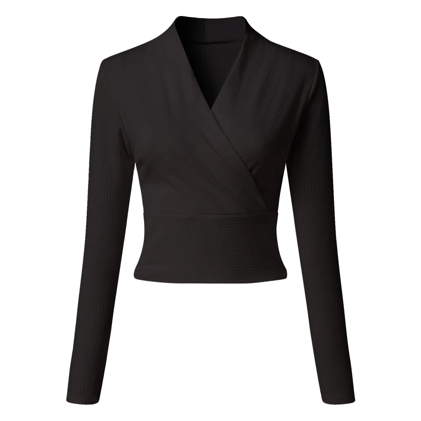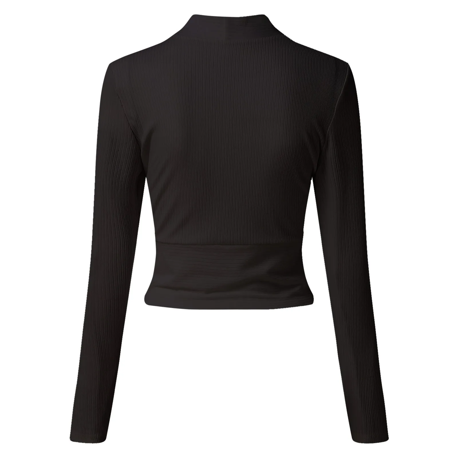 Женская Однотонная футболка с v-образным вырезом и перекрестными ремешками, сексуальная женская трикотажная футболка с длинными рукавами, облегающая короткая Праздничная футболка, Прямая поставка