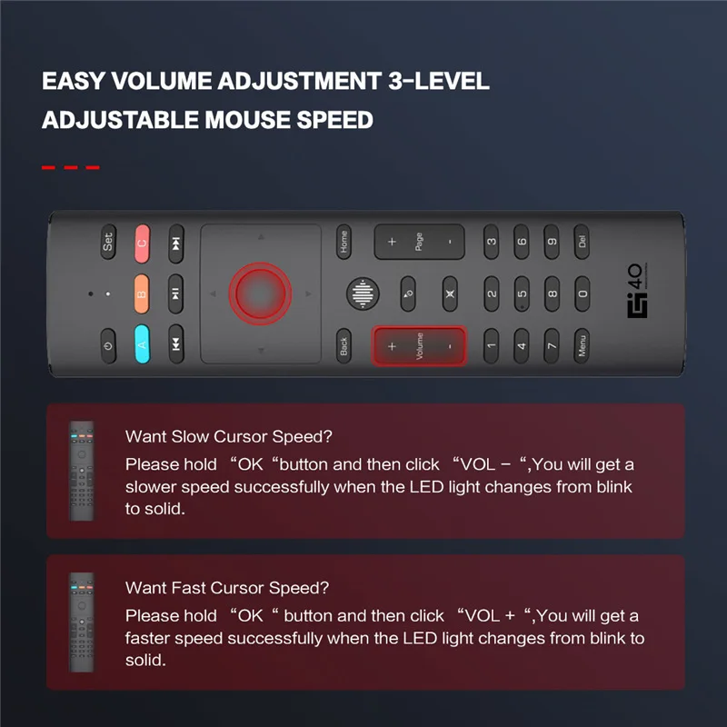 -Функция голосового поиска G40S. Все, что вам нужно сделать, это спросить. Говорите в голосовом пульте дистанционного управления и TV Box ищет то, что вы хотите. Попросите лучшее в фильмах, в современной погоде или в последних новостях знаменитостей!
