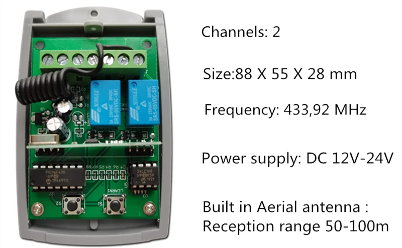 1) можно узнать фиксированный и скользящий код 433,92 мгц дистанционного управления отдельно и одновременно! 2) можно узнать и использовать самые оригинальные 433,92 МГц фиксированные и скользящий код дистанционного управления! 3) 2-канальный приемник предоставляет вам возможность управления и одновременного использования 2 автоматических ворот или систем сигнализации 4) очень низкая цена.