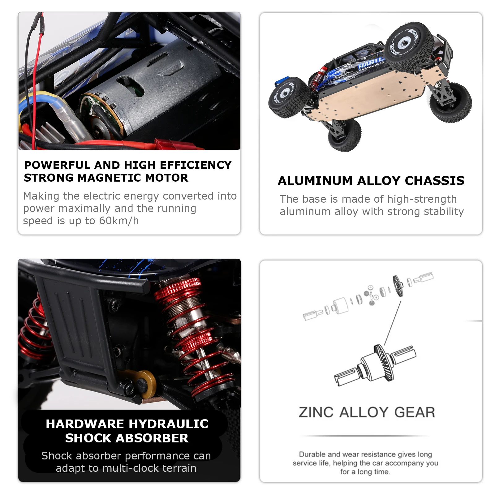Скоростной гоночный автомобиль Wltoys 124018, 60 кмч, 112, 2,4 ГГц, Радиоуправляемый автомобиль для бездорожья, гоночный автомобиль RTR, полноприводный, шасси из алюминиевого сплава, шестерня из цинкового сплава