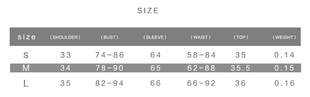 Параметры Применимый Пол: Женский Применимый Возрастной диапазон: взрослый Ткань: полиэстер Цвет: кофейный, черный, белый Размер: S/M/L Таблица размеров Размер (см) SДлина: 35 Бюст: 74-86 Рукав: 64 Плечо: 33 М Длина: 35,5 Бюст: 78-90 Рукав: 65 Плечо: 34 LДлина: 36 Бюст: 82-94 Рукав: 66 Плечо: 35 Размер (дюймы) S Длина: 13,78 Бюст: 29,13-33,86 Рукав: 25,20 Плечо: 12,99 МДлина: 13,98 Бюст: 30,71-35,43 Рукав: 25,59 Плечо: 13,39 LДлина: 14,17 Бюст: 32,28-37,01 Рукав: 25,98 Плечо: 13,78 Дружеские советы Цвет Поскольку разные компьютеры отображают цвета по-разному, цвет самого элемента может незначительно отличаться от цвета на изображениях выше, спасибо за понимание. Запах Все наши товары абсолютно новые, это нормально, что будет какой-то химический запах, Просто расслабьтесь, положите его на улицу на несколько часов или просто опустите в воду на полчаса, запах исчезнет. Гарантия Мы стремимся к 100% удовлетворенности клиентов обслуживанием и опытом. Посылка входит 1 х женские кроп-топы
