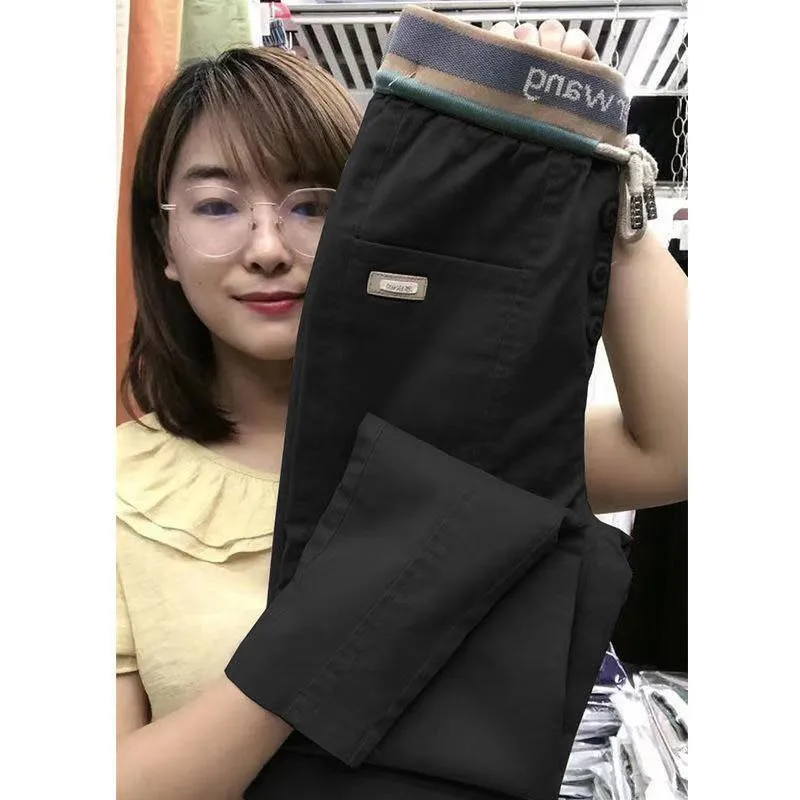 Женские свободные брюки с поясом на резинке, универсальные повседневные хлопковые шаровары, модель V156 в Корейском стиле на весну и осень, 2022