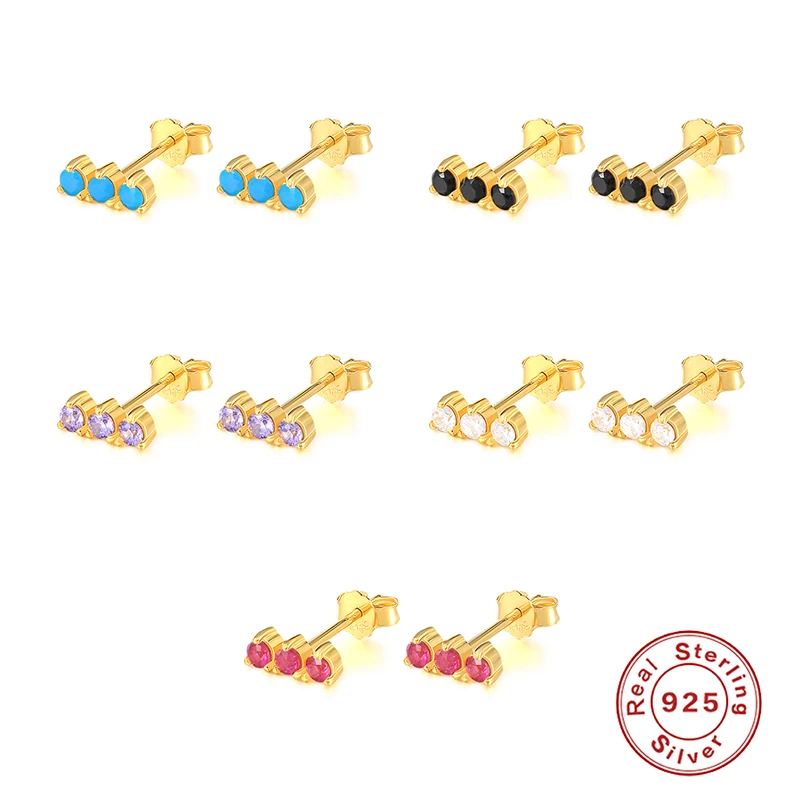 Aide 925 стерлингового серебра красочные три циркон серьги-гвоздики...