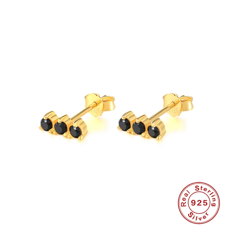 GS 925 Стерлинговое Серебро Золото Три Циркон линии серьги-гвоздики в виде пирсинга Ohrringe Pendientes Европейская мода, хорошее ювелирное изделие, подарок
