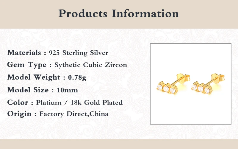 925 пробы серебряные золотые три циркониевые серьги-гвоздики кристальная линия пирсинг серьги-гвоздики Ohrringe Pendientes европейские ювелирные изделия