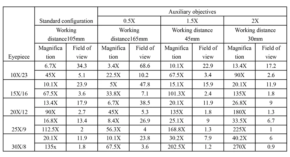 Zoom magnification6.7X-45X 6.7X-90X 3.35X-45X 3.35X-90X